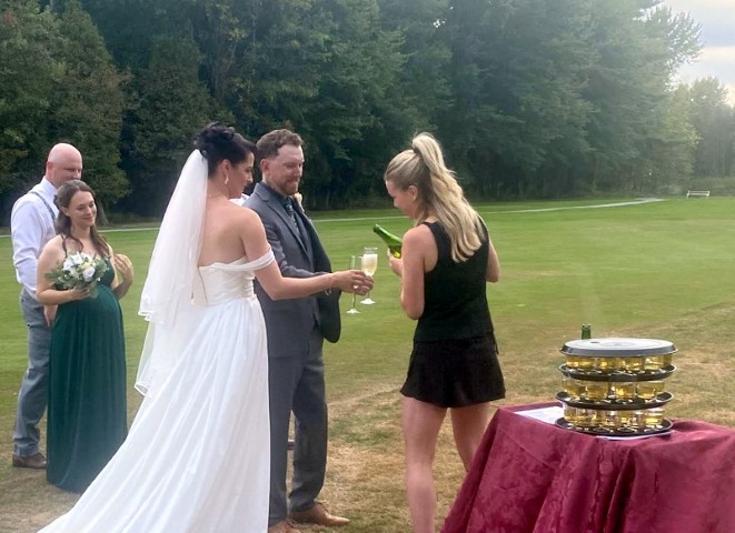The wedding ceremony, which was at the Morrisburg Golf Course , near Ingleside began at 4-00 pm and by 5-30pm, I was heading back towards Cornwall and the border crossing to the US .