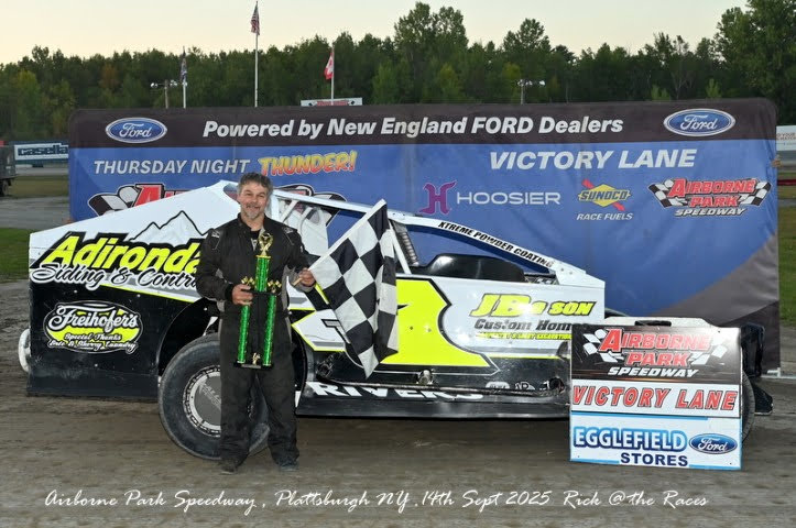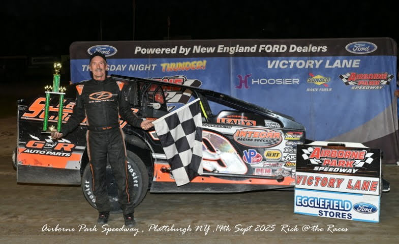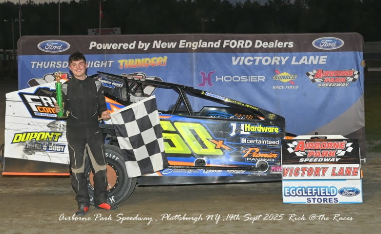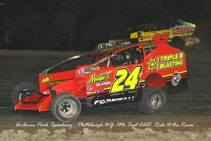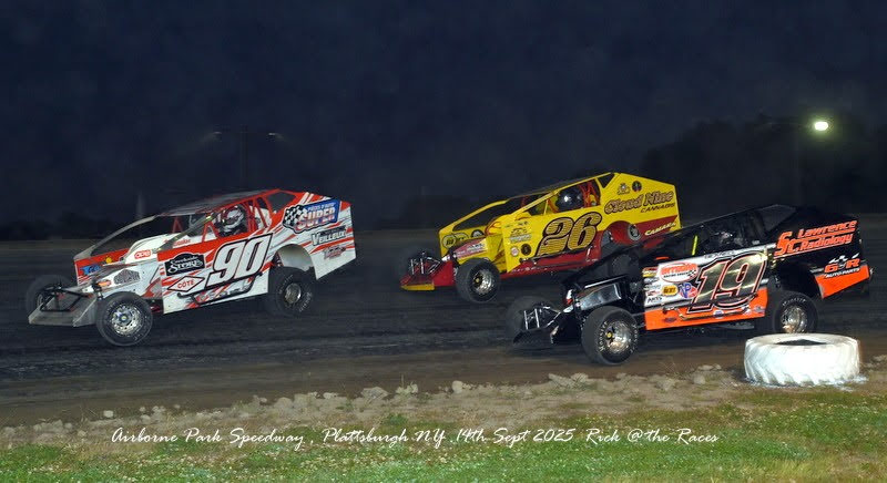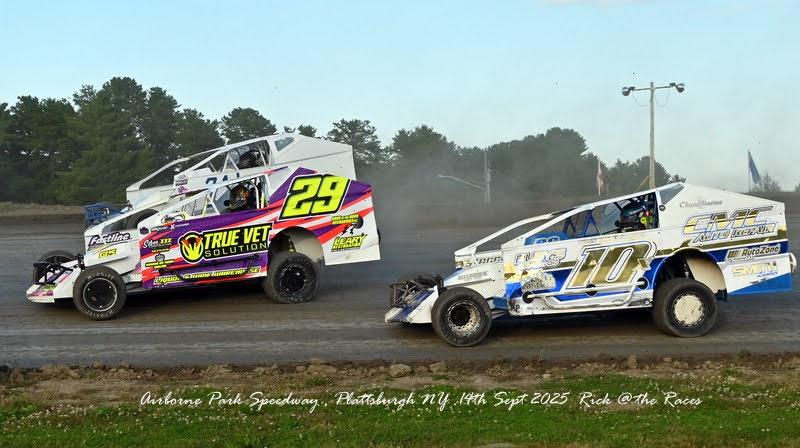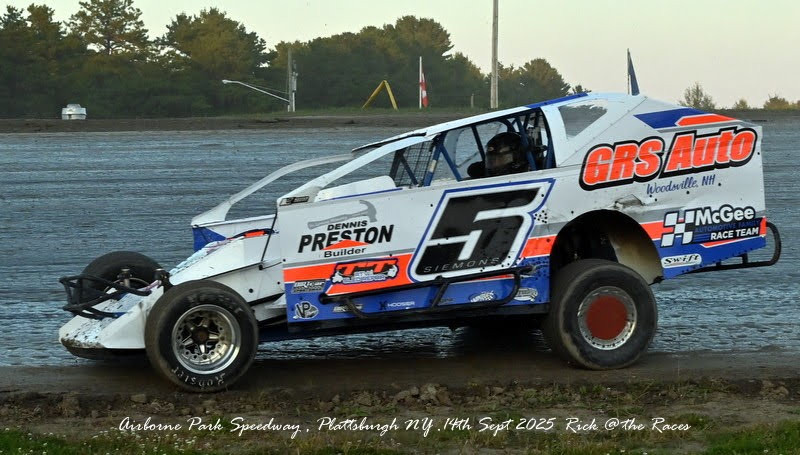 I was out of bed at 10-00 am on Sunday morning , and at 1-30 pm , Don Simpson was out side my house , picking me up to head off to the Airborne Park Speedway at Plattsburgh New York.