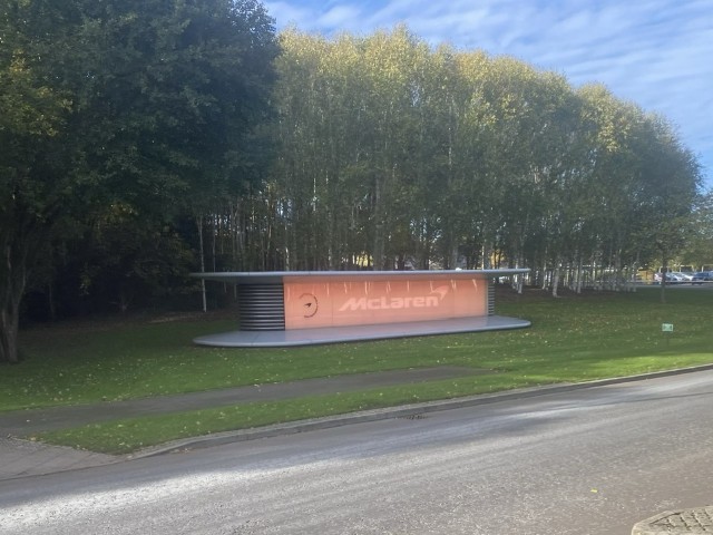 While on route , we passed the HQ of the world famous McLaren F1 team in Woking.