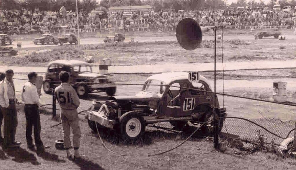 The #8 car coming in to the picture belonged to Pete Webb , of Slough . He was still racing BriSCA F1 when I began racing them, back in 1974.