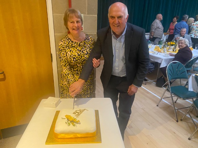 To celebrate their 50 years together , a Golden Wedding Party was planned for lunchtime on Sunday the 26th of October at the village hall in nearby Shipton Under Wychwood .