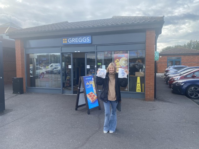 We chatted for over an hour then carried on to Havant . While I was chatting with Rob , he happened to ask if I’d been to Greggs on this trip (they are my favorite bakery chain in England) . I hadn’t, but this was soon rectified when we stopped at the Chievely Services near Newbury .